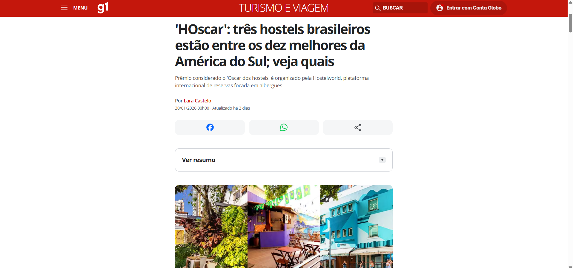 Notícia quentinha direto do G1! 🎉 Estamos pulando de alegria para compartilhar com vocês: o Pura Vida Hostel Rio de Janeiro acaba de entrar para o seleto grupo dos 10 melhores hostels da América do Sul no Hoscar Awards 2026 … Mais informações